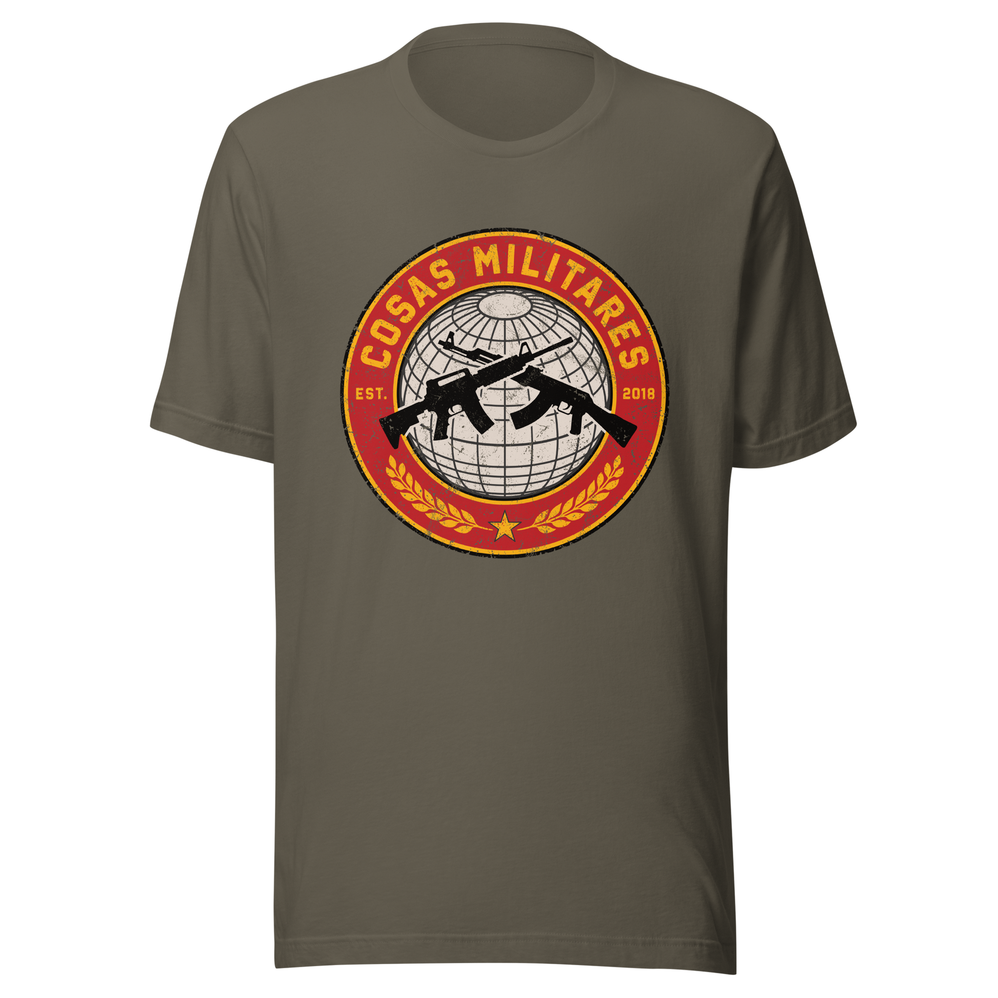 Camiseta oficial de "Cosas Militares" que conserva el patrón de colores del viejo logo, los fusiles cruzados AK-47 ruso y AR-15 estadounidense reflejando el marcado carácter militar del canal junto a un globo terráqueo en el fondo que simboliza la influencia de lo militar en la geopolítica que estudiamos en el canal. Esta camiseta es el producto ideal para seguidores con carácter. Además, la camiseta es suave y ligera, con la cantidad justa de elasticidad, no se arruga, es cómoda y realza la figura. ¡Cómprala ya!